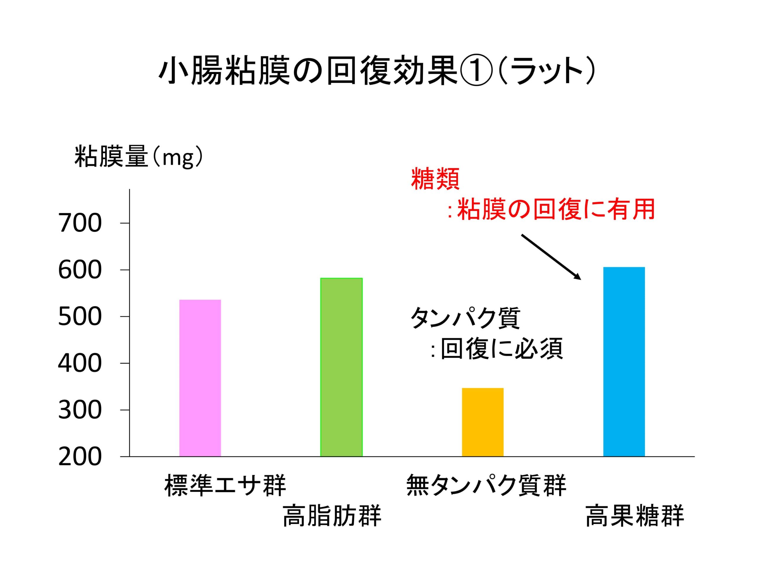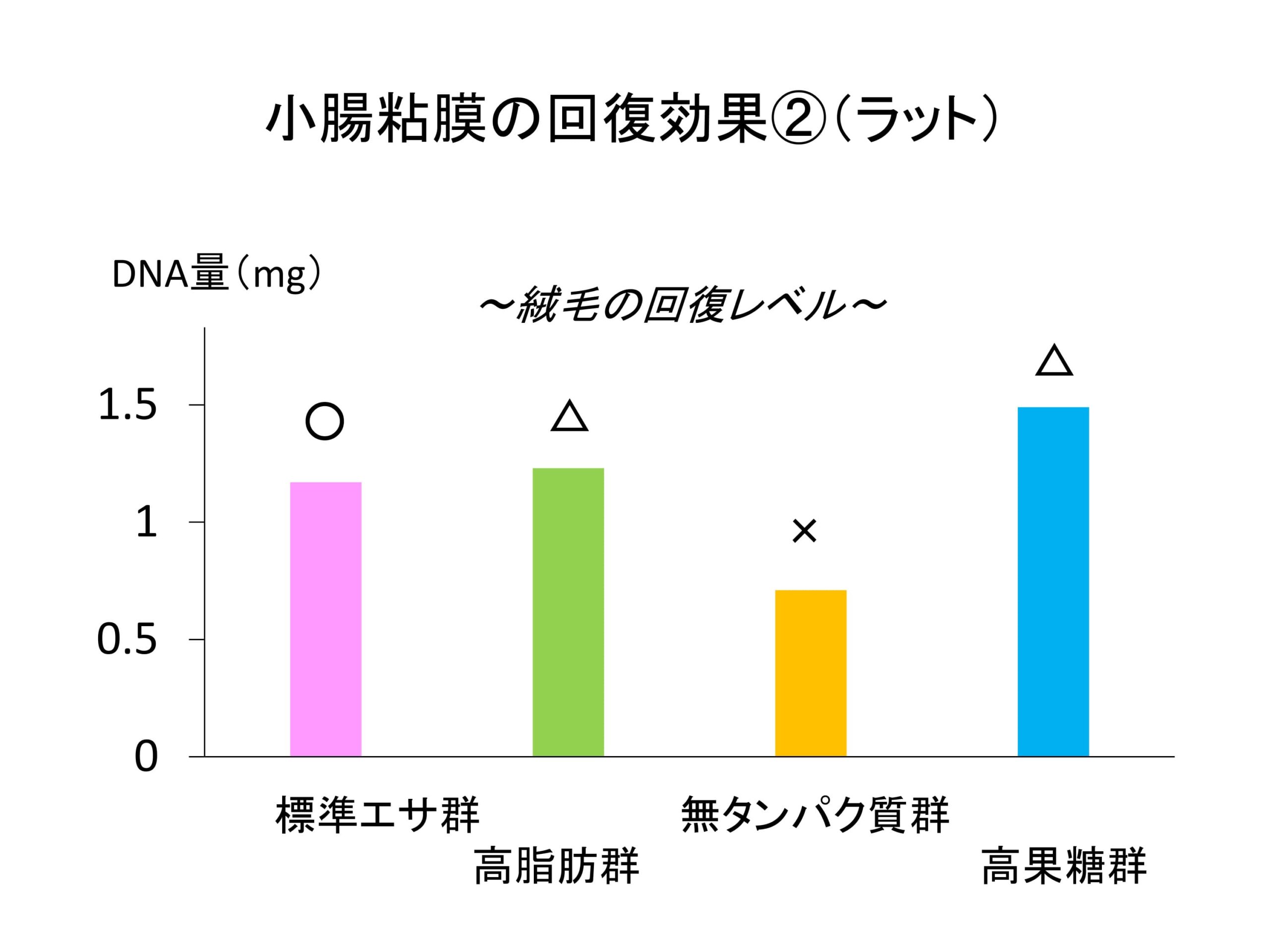 以上の成績をまとめると絶食ダメージからの小腸の回復にはタンパク質が重要であり、早期の修復には糖類が有用であるといえます。