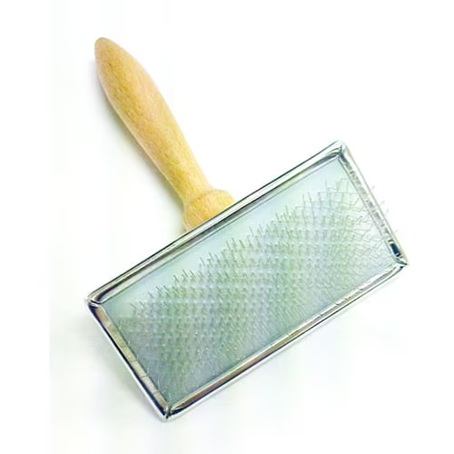 スリッカーを使う際、毛に対して水平方向に一気に引っ張ると痛がったりしますので、ブラッシングする箇所の毛をかき分けて根元のほうから少しずつ毛を梳いていくようにしましょう。