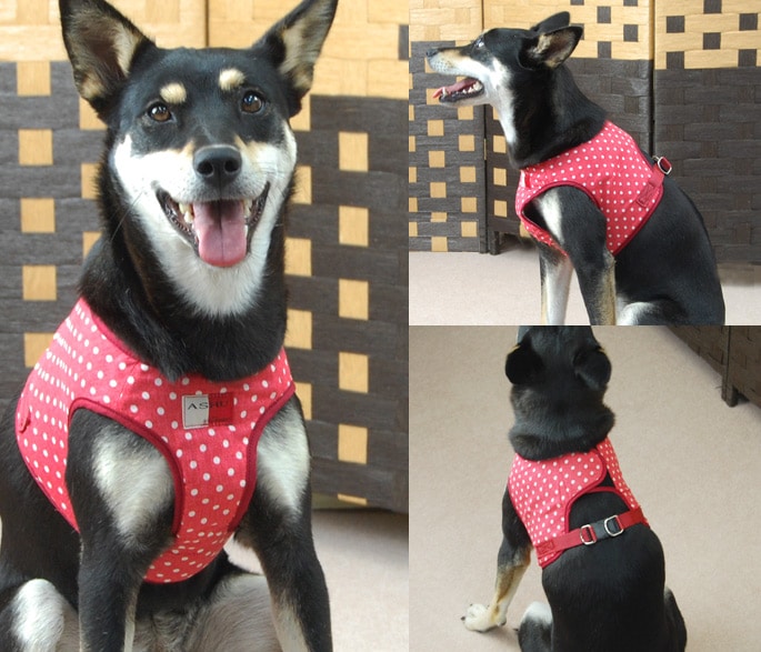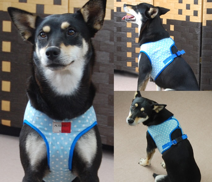 ASHUウェアハーネス 水玉 Lサイズ(中型犬用)【リードは別売り】