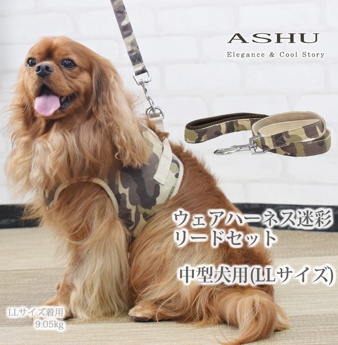 犬用ハーネス 小〜中型犬|ASHU ウェアハーネス迷彩 セット LLサイズ