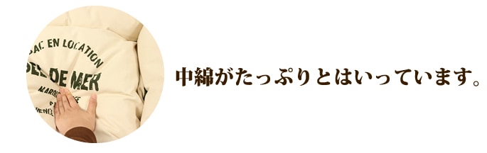 手でおしてもわかるくらい中綿がたっぷりとはいっていてますので丈夫で長持ちします。