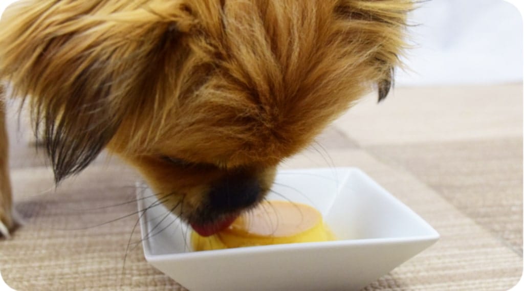 砂糖不使用で優しい味わいの美味しいプリン。キャラメル部分には蜂蜜を使用し、自然な甘さが愛犬の興味をそそります。柔らかいプリンなので、老犬や小型犬にもおすすめです。