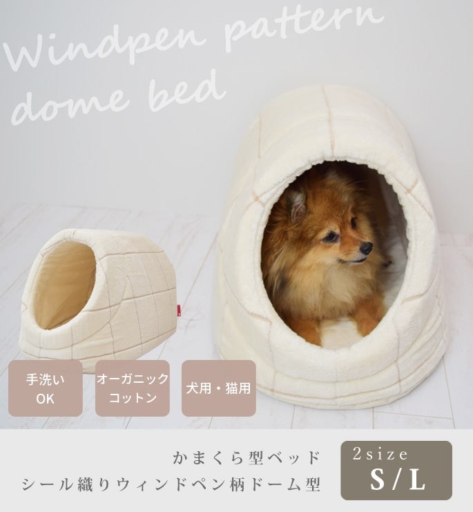 すべての商品 > 【愛犬愛猫用】かまくら型ベッド シール織りウィンドペン柄 ドーム型 S/Lサイズ【日本製】