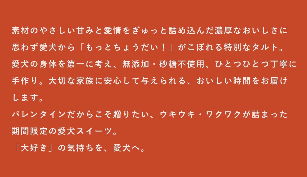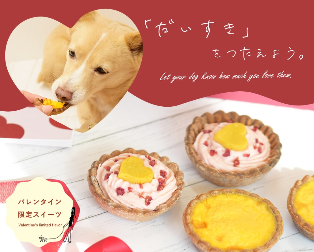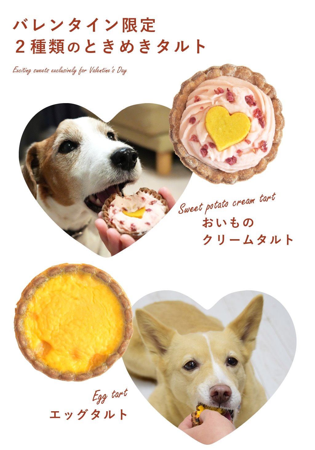 愛犬に「大好き」を伝えよう。バレンタイン限定2種類のときめきタルト!無添加で砂糖不使用なので大切な家族に安心して与えられる愛犬のとっておきのおやつ