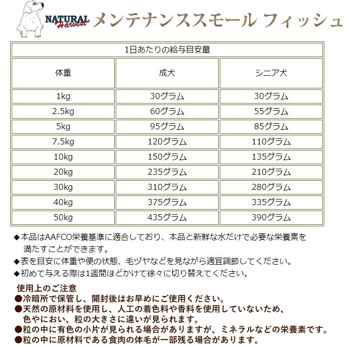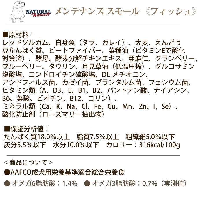 【ナチュラルハーベスト メンテナンススモール フィッシュ ドッグフード】