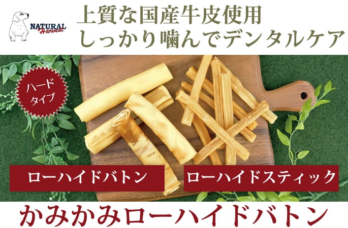 犬用無添加おやつ > ガム・デンタルトリーツ > ナチュラルハーベスト おやつ|かみかみ ローハイド バトン 7本入り 大型犬 中型犬用