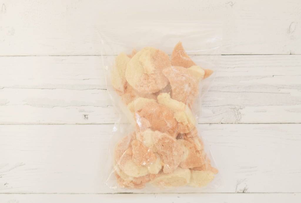 そのため、袋の中で商品に霜がつくことがありますが、品質や安全性には問題ありません。 解凍すればいつも通り美味しくお召し上がりいただけますのでご安心ください。