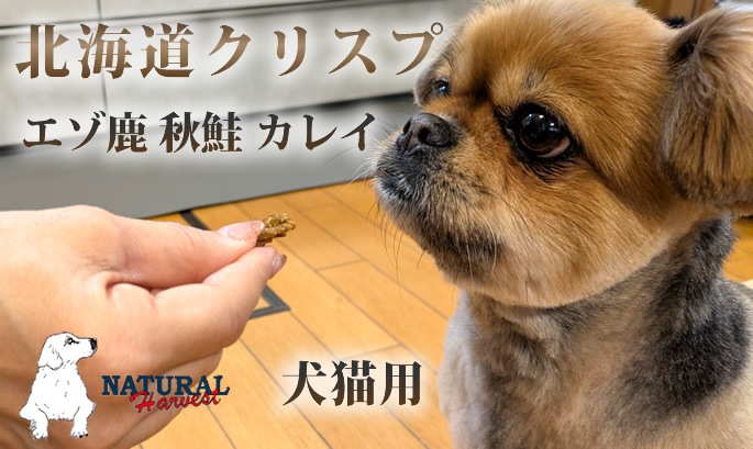 ペット用品・ドッグフードの通販/販売 帝塚山ハウンドカム TOP > 犬用無添加おやつ>魚のおやつ > ナチュラルハーベスト おやつ|ジャーキー 北海道クリスプ(エゾ鹿 秋鮭 カレイ)