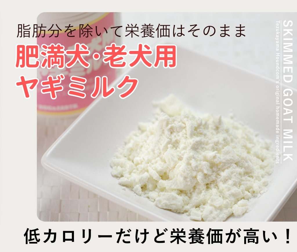 【肥満犬・老犬用ヤギミルク】はパウダータイプだから使いやすい!ぬるま湯で溶いて水分補給に、フードにかけて栄養補給に!脂肪球が小さく消化がしやすいヤギミルクはどんな犬や猫にもオススメします。また、脱脂粉乳のため低カロリー!でも栄養価はとっても高いから、体重の気になる子や、老犬にもおすすめ。ドライフードや手作りフードのトッピングに適しています。 【肥満犬・老犬用ヤギミルク】をいつもお使いのお客様はこちらのページからご購入下さい。