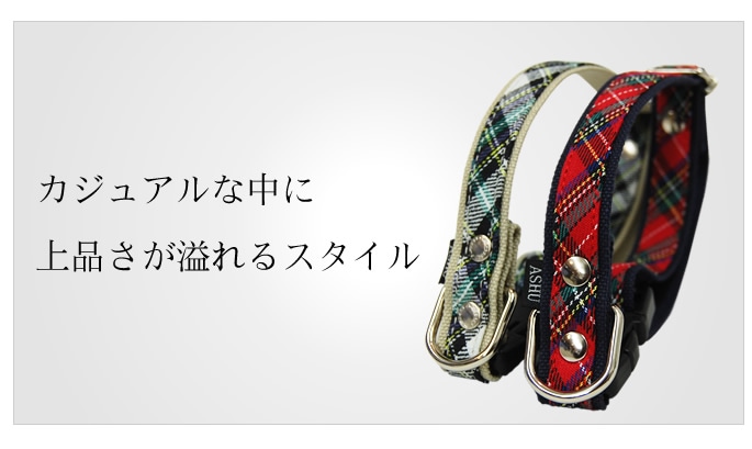 中型犬用首輪|ASHU トラッド カラー Mサイズは、人気のチェック柄!カジュアル&上品さがどんなシーンにもあう中型犬用首輪です。