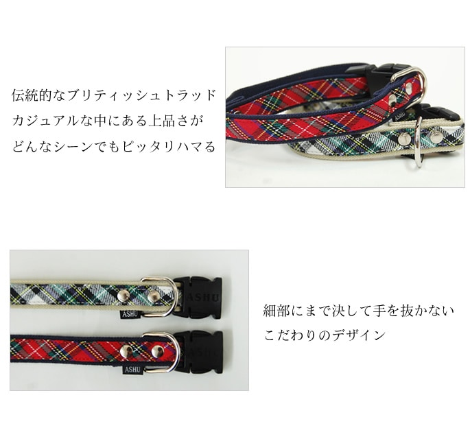 ASHU トラッド カラー Mサイズは中型犬にお勧めの首輪です。ASHU トラッド カラーは人気のチェック柄でリッチカジュアルな首輪です。