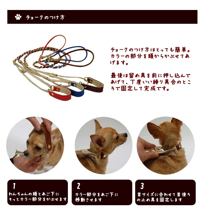 小型犬用首輪|ASHU ツイストコンビカラーチョークリード Mサイズ
